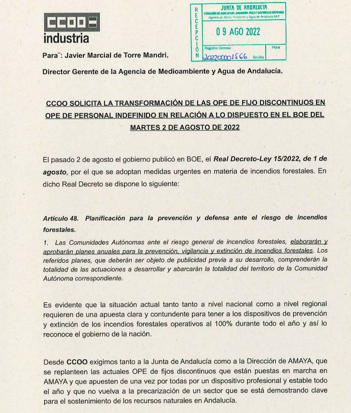 LA LEY 2/2002 DE 11 DE NOVIEMBRE, DE GESTIÓN DE EMERGENCIAS EN ANDALUCÍA Y EL ANTEPROYECTO DE LEY QUE LO MODIFICA, NO AFECTA AL PERSONAL DEL PLAN INFOCA PERTENECIENTE A AMAYA.